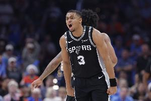 本场比赛,马刺球员凯尔登表现出色,替补上来效率很高,外线更是神准,在24分半的时间里,投篮15中10,三分球7中5,罚球3中2,拿到27分10篮板1助攻的数据。