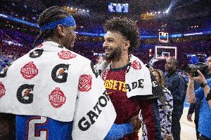 在今天掘金128-125战胜爵士的比赛中,掘金后卫贾马尔·穆雷发挥出色,全场比赛他19中13,三分球13中8,罚球12中11,轰下45分2篮板8助攻2抢断的数据。