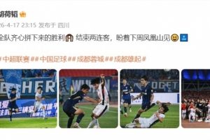 体育资讯4月17日讯 中超联赛第6轮,成都蓉城客场1-0击败武汉三镇,继续领跑积分榜。