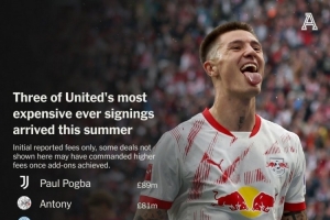 体育资讯8月9日讯 媒体TA统计了曼联引援的转会费,并列出榜单,博格巴8900万英镑居首,安东尼次席,前10名球员中有3人是在今夏加盟。