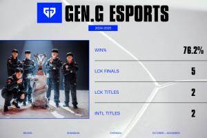 体育资讯10月15日讯 S15瑞士轮GEN对阵PSG赛前,官方直播间放出了GEN成绩图,但是选手合照放的是S14 T1合照。